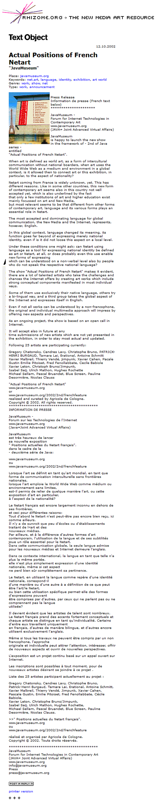 Actual Positions of French Netart – Re-launch 2020